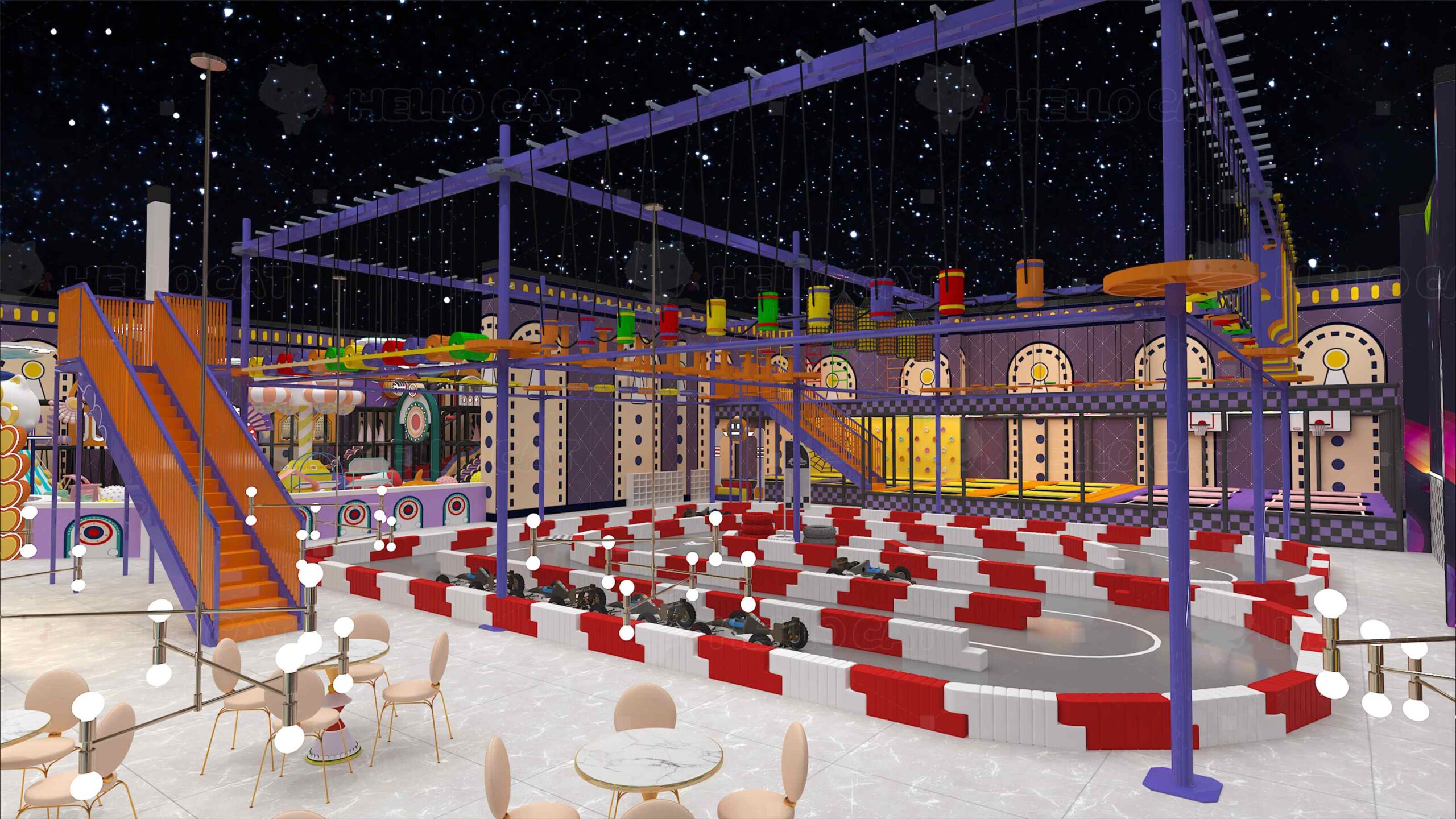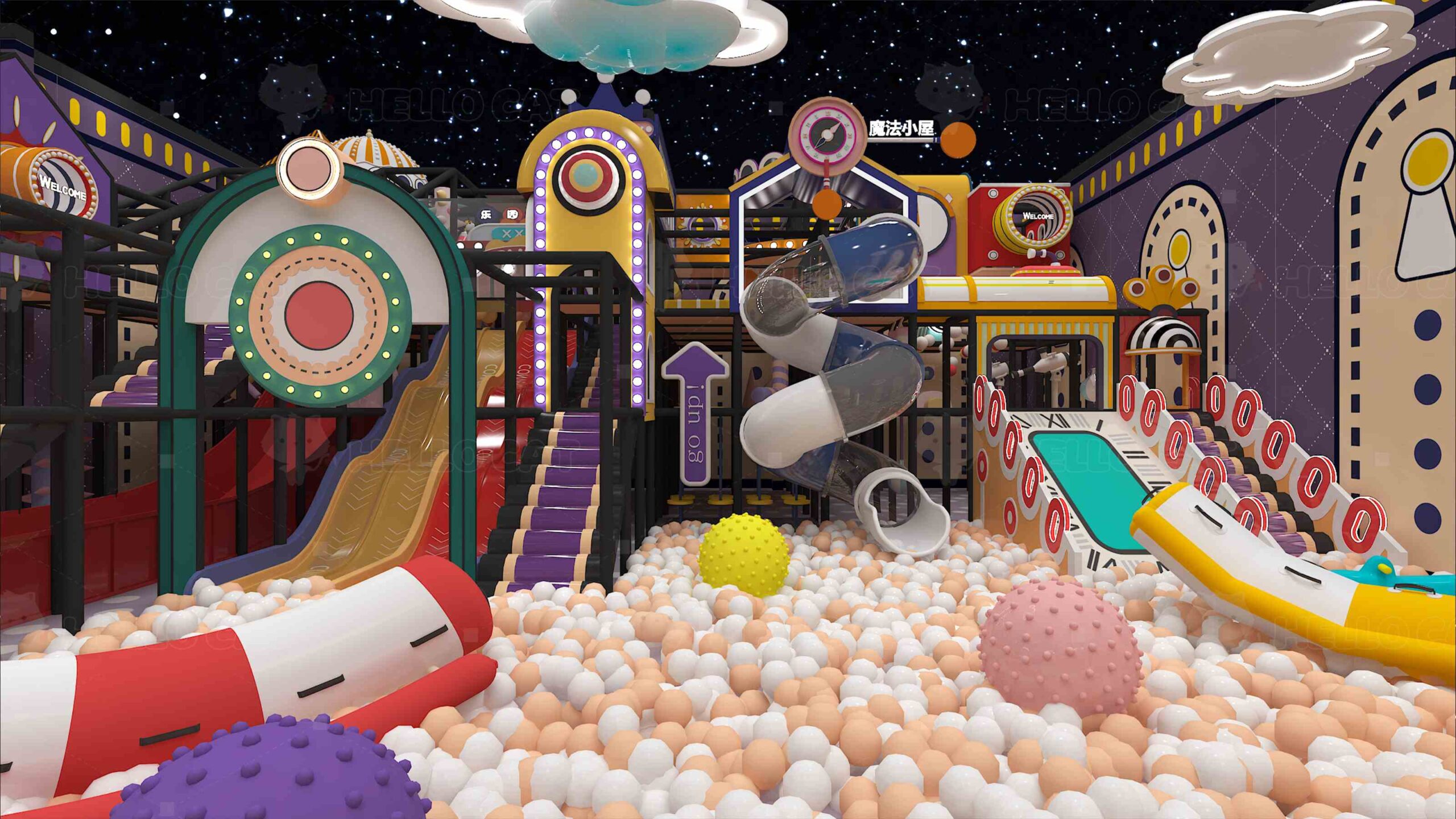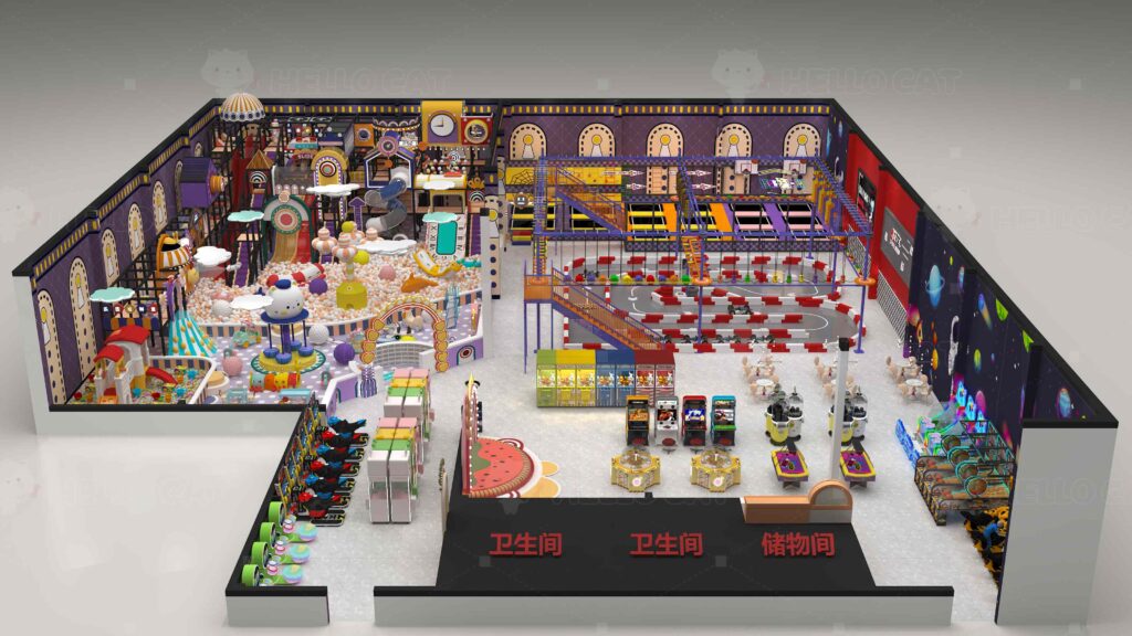 Hello cat specializes in children’s indoor playground equipment and hasits own large-scale processing factory and warehouse.More than ten yearsof design and operation experience Integrating R&D, design, manufacturingsales and operation of children’s indoor amusement equipment. we are a professional manufacturer of playground equipment